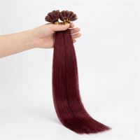 Disse 50 cm Hot Fusion Extensions i fargen rød #33 gir deg muligheten til å oppnå langt og fyldig hår. Hver tot er utstyrt med negleformet keratinvoks, noe som sikrer en diskret og langvarig påsetting.
