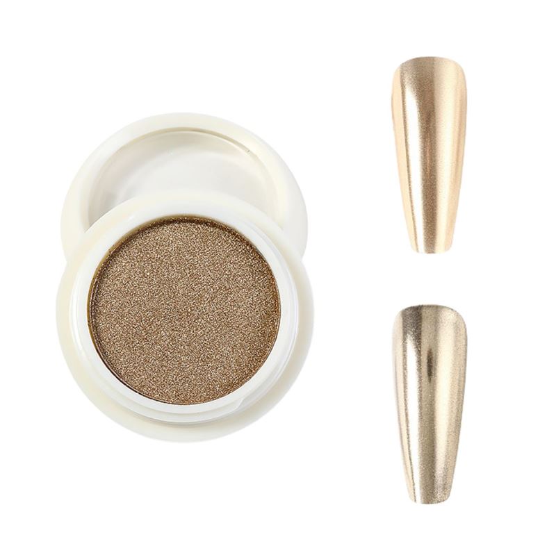 Opplev Chrome Powder i lysgull som transformerer neglene dine til et glansfullt utseende. Chrome Powder er kjent for sin unike evne til å skape en speilende, metallisk finish, består av fint malte pigmenter som reflekterer lys og gir en glinsende, kromlignende overflate.
