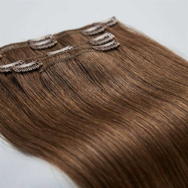 Clip On Extensions Remy-hår, 40 cm, #6 Brun