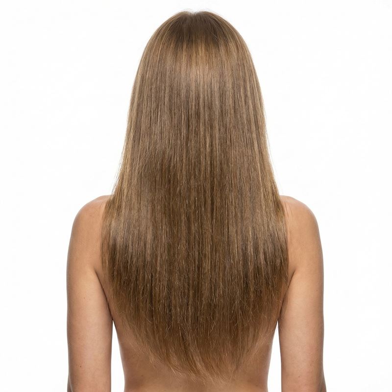 Disse Clip-on Extensions i 65 cm lengde og fargen Super lysebrun 12# er laget av 100% ekte Remy-hår, og gir deg umiddelbart lengde og volum til frisyren din.