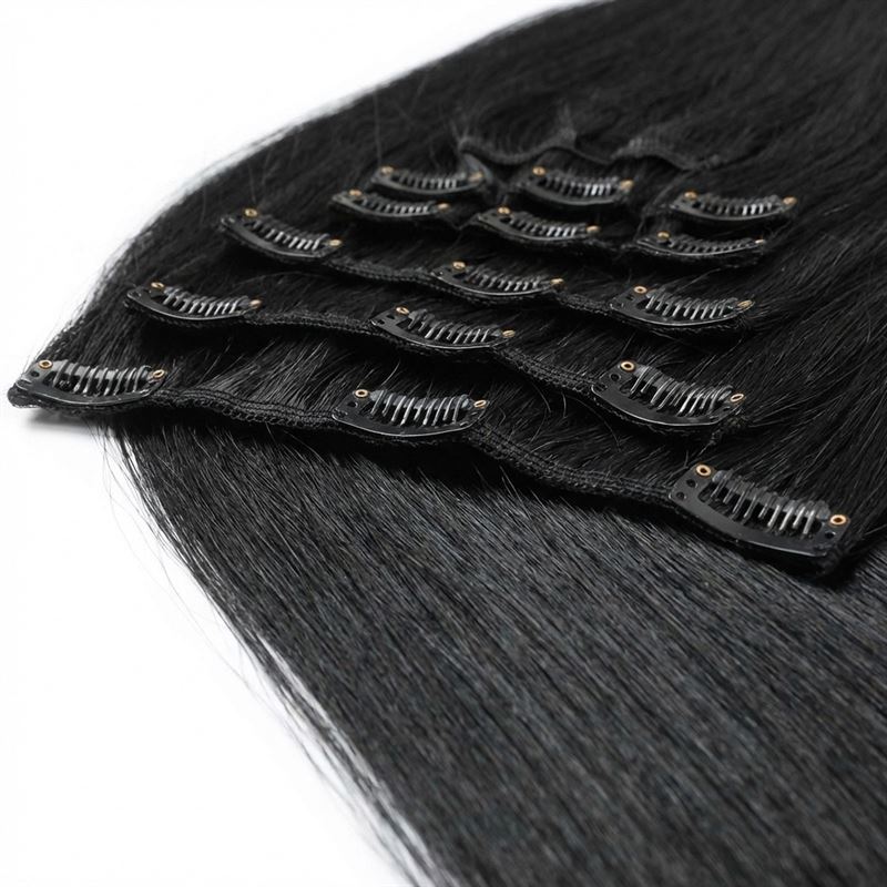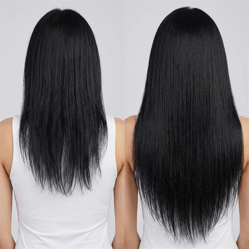 Disse Clip-on Extensions på 65 cm i fargen 1# svart er laget av 100 % ekte Remy-hår, og gir deg umiddelbart lengde og volum til frisyren din.