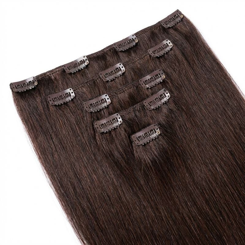 Clip on hair #2 50 cm Mørkebrun