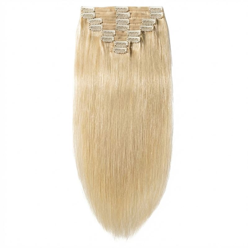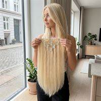 Clip-on hair extensions, Remy-hår, 50 cm, Blond #613, 7-delt