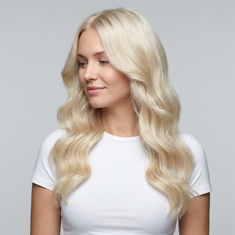 Cold Fusion Extensions i 50 cm lengde og Platin blond 60# er laget av 100% ekte Remy-hår, og gir et naturlig og sømløst resultat for lengre og fyldigere hår.