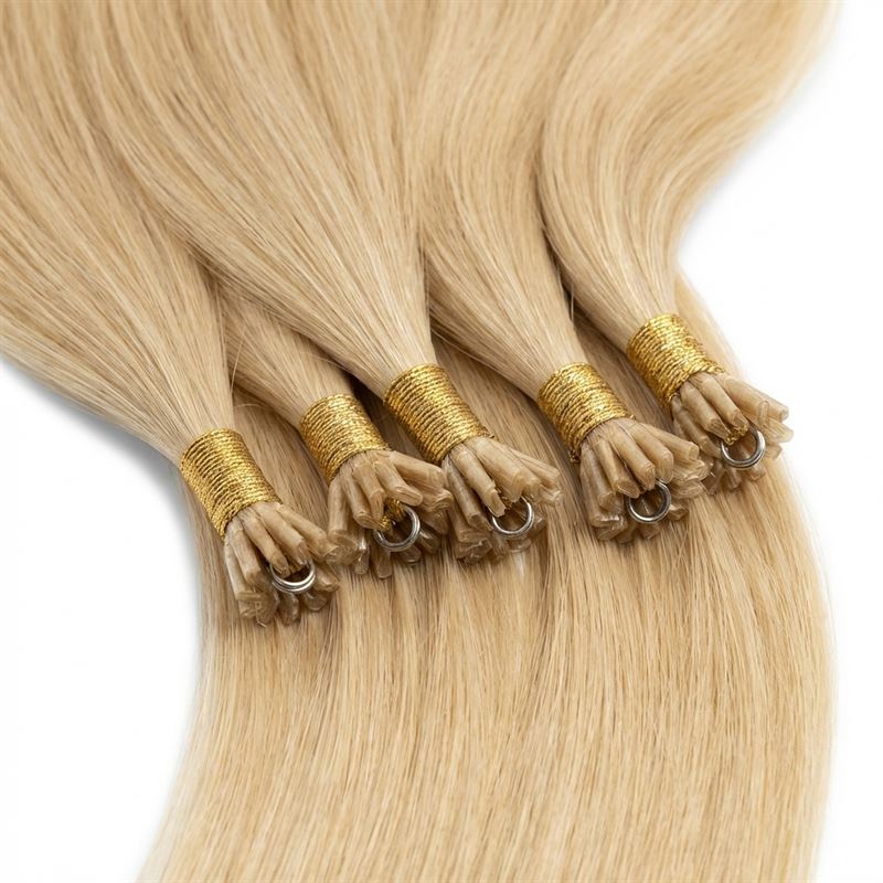 Disse Cold Fusion extensions i 50 cm lengde og blond #613 farge er laget av 100% ekte Remy-hår, og gir en naturlig og skånsom hårforlengelse.