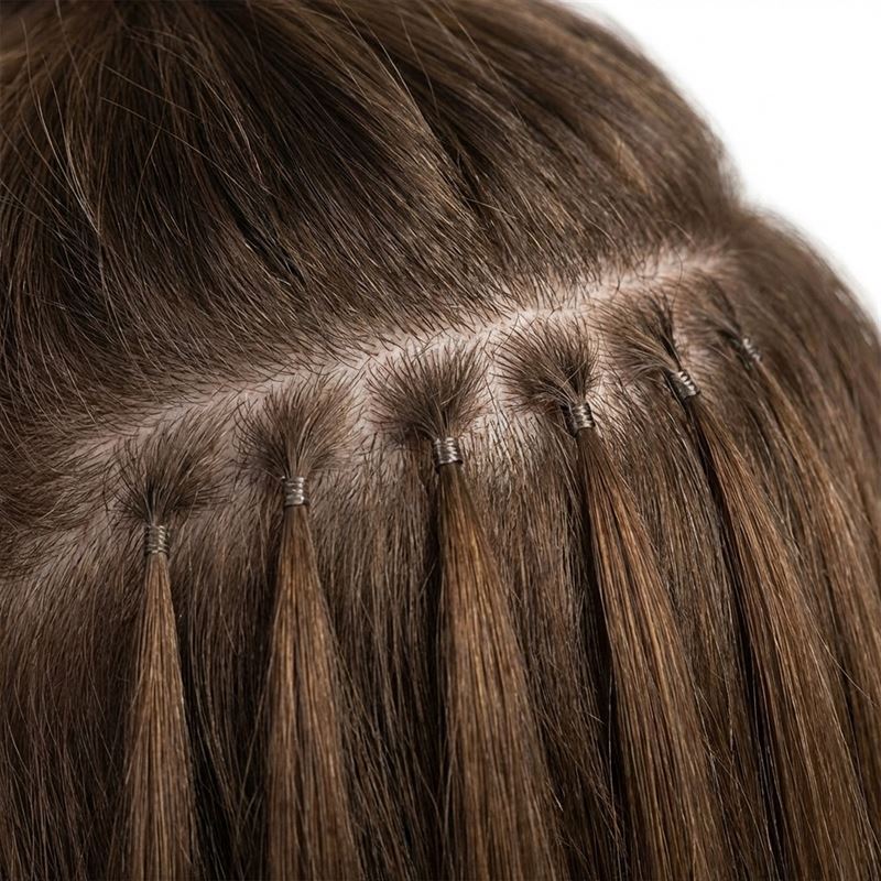 Disse Cold Fusion hair extensions i 50 cm lengde og fargen brun 4# er laget av 100% Remy-hår, og gir et naturlig og sømløst resultat for lengre og fyldigere hår.