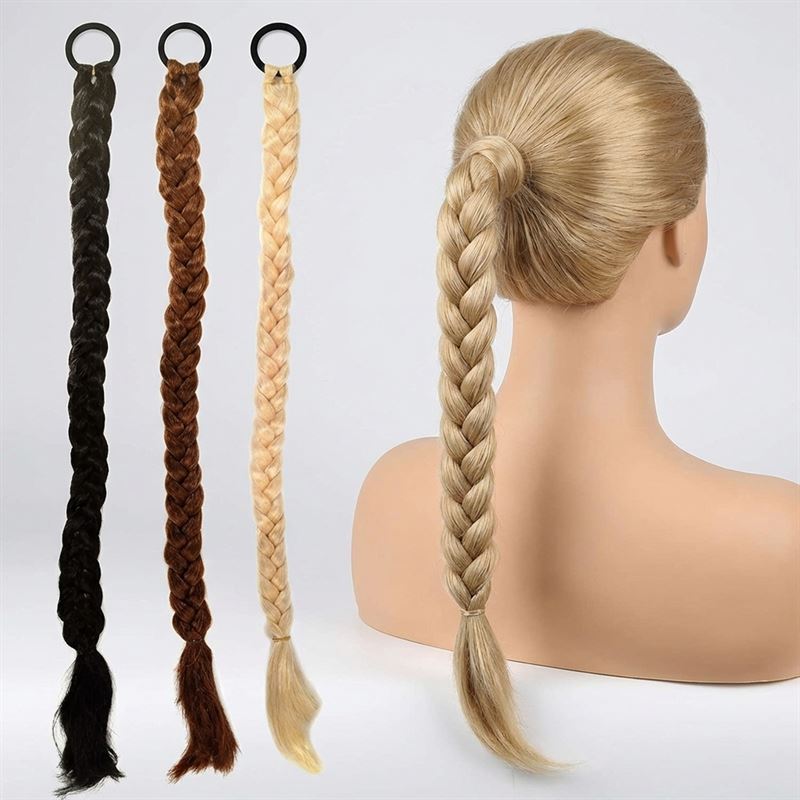 Denne flettede Ponytail-forlengelsen på 60 cm er laget av syntetisk hår og festes enkelt med en strikk, noe som gir deg en vakker flettet frisyre på et øyeblikk.