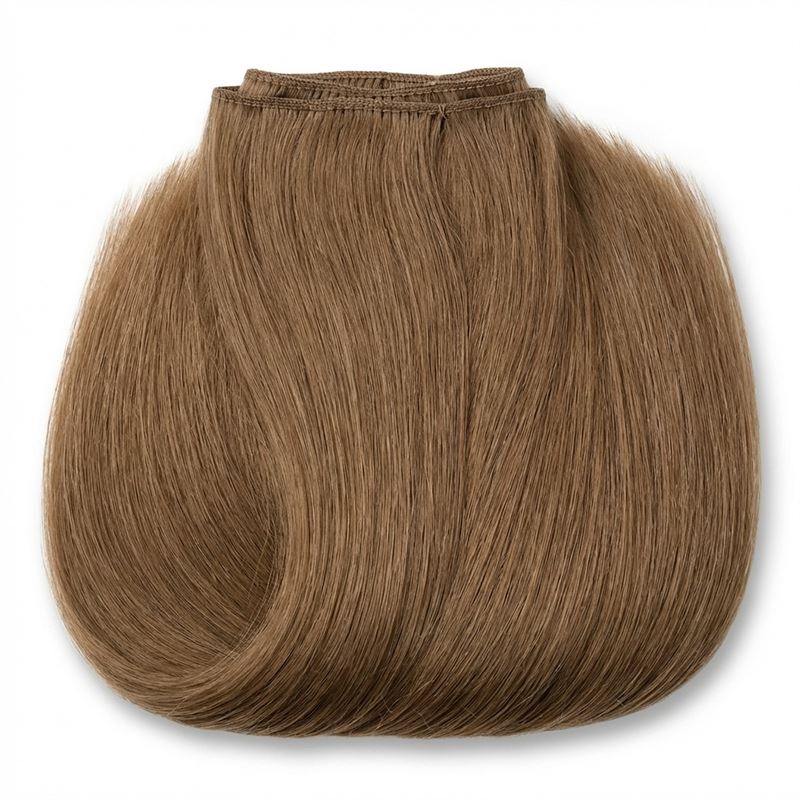 pakken inneholder en 100 cm bred hår-weft og 20 løse clips som enkelt kan sys på for å skape dine egne clip-on extensions. Med en vekt på 100 gram får du nok hår til å tilføre volum eller lengde. Håret kan glatttes, krølles og permanentes, slik at du kan style det akkurat slik du ønsker.