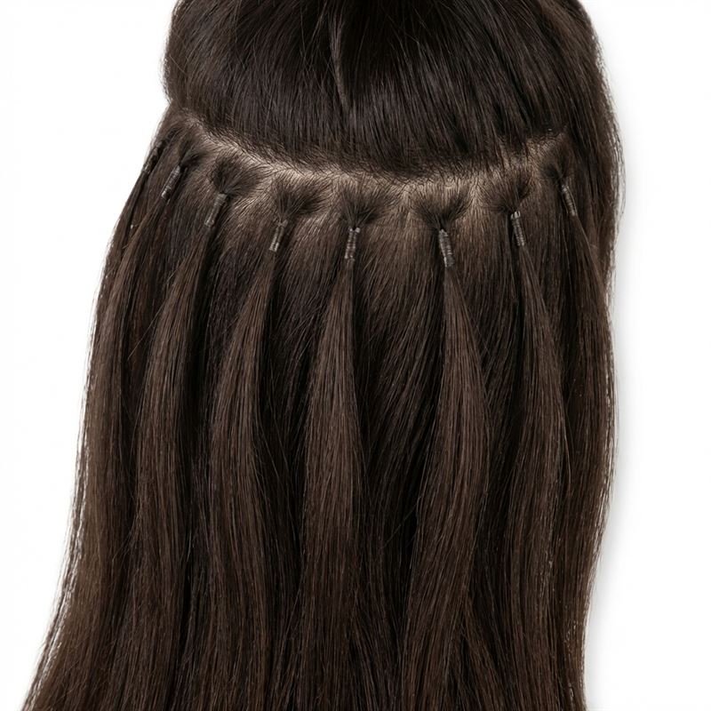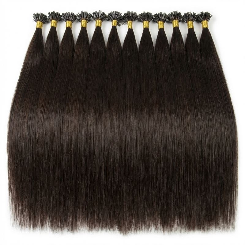 Disse Hot Fusion Hair extensions i 50 cm lengde og fargen mørkbrun #2 gir deg muligheten til å oppnå langt og fyldig hår med et naturlig utseende.