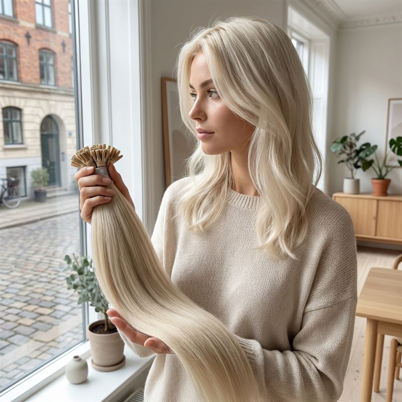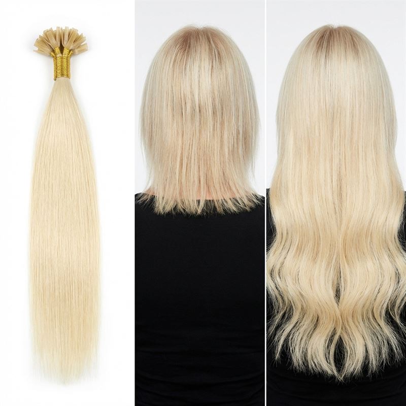 • Festemetode: Hot Fusion (med negleformet keratinvoks)