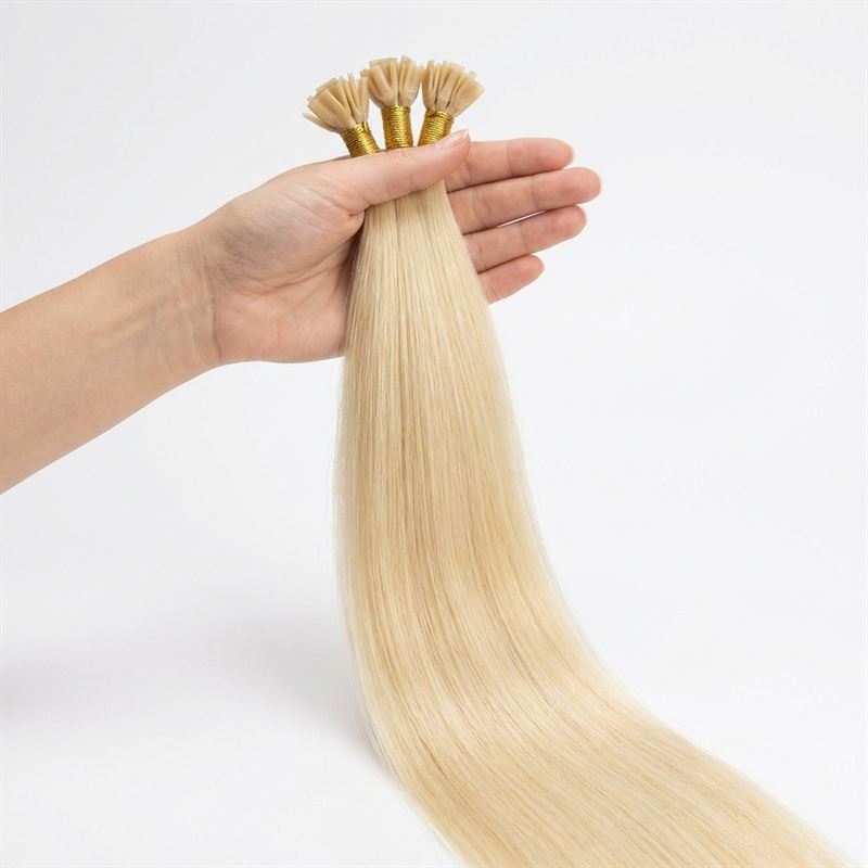 Hver pakke inneholder omtrent 100 U tip extensions, der hver tot veier 0,5 gram, noe som gir en totalvekt på 50 gram per pakke. Disse extensionsene er utstyrt med negleformet keratinvoks i den ene enden, som enkelt smeltes inn i ditt eget hår ved hjelp av en Hot Fusion connector. Remy-kvaliteten sikrer at håret blander seg naturlig med ditt eget, og gir et usynlig resultat som varer i 2-6 måneder.