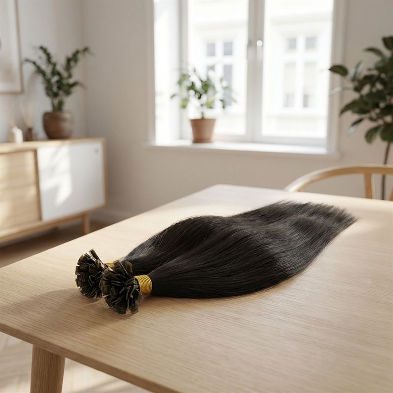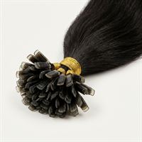 Disse extensionsene er laget av 100% ekte Remy-hår, hvor alle hårstrå og skjellag vender i samme retning, akkurat som ditt eget hår. Dette sikrer en sømløs blanding og et naturlig utseende. Hver pakke inneholder omtrent 100 U-tip extensions, hver på 0,5 gram, med en totalvekt på 50 gram. De er utstyrt med negleformet keratinvoks som smeltes inn i ditt eget hår med en Hot Fusion connector, og kan vare i 2-6 måneder.