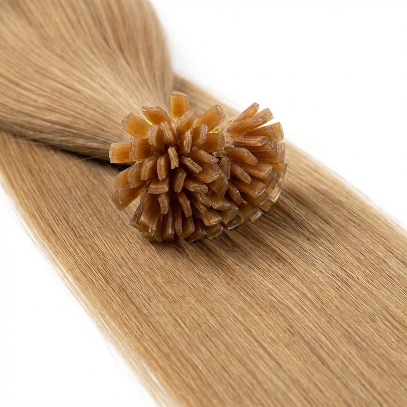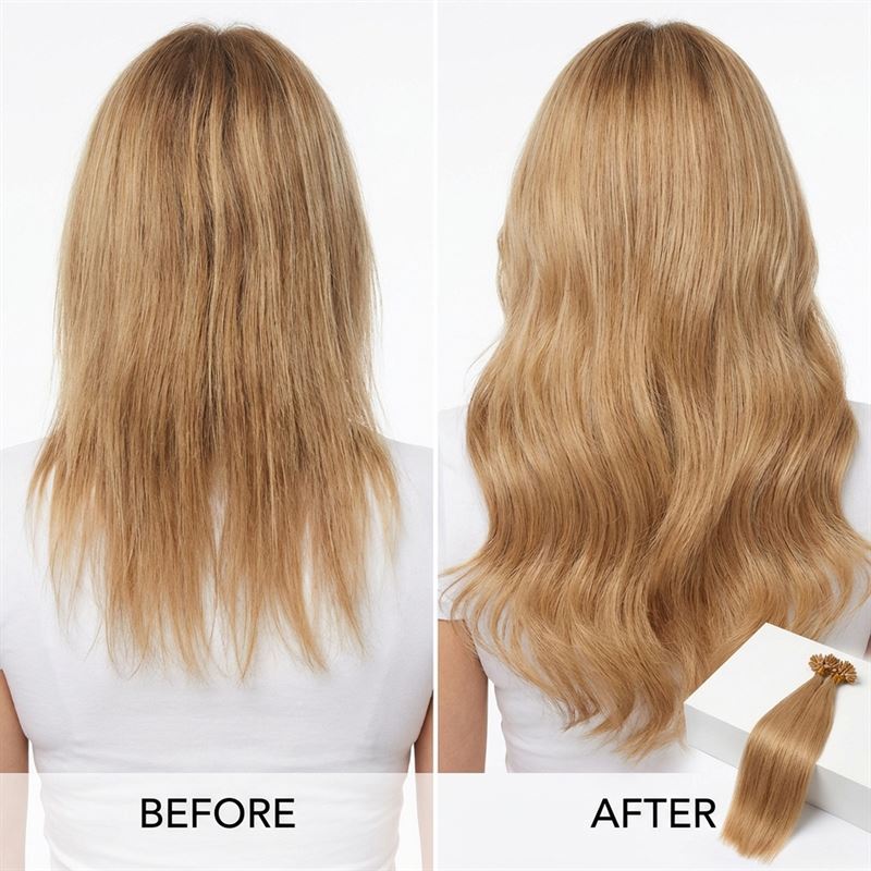 Hver pakke inneholder ca. 100 U-tip extensions, hver på 0,5 gram, totalt 50 gram. Håret er 100 % ekte Remy-hår, noe som betyr at alle hårstrå og skjellag vender i samme retning, akkurat som ditt eget hår. Dette sikrer en naturlig overgang og et sømløst resultat. De negleformede keratinvoks-tuppene smeltes enkelt inn i ditt eget hår med en Hot Fusion connector for en sikker og langvarig festing.
