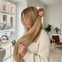 Disse Hot Fusion Hair extensions på 60 cm i fargen #27 mellomblond er laget av 100 % ekte Remy-hår, og gir deg muligheten til å få langt og fyldig hår som holder i 2-6 måneder.