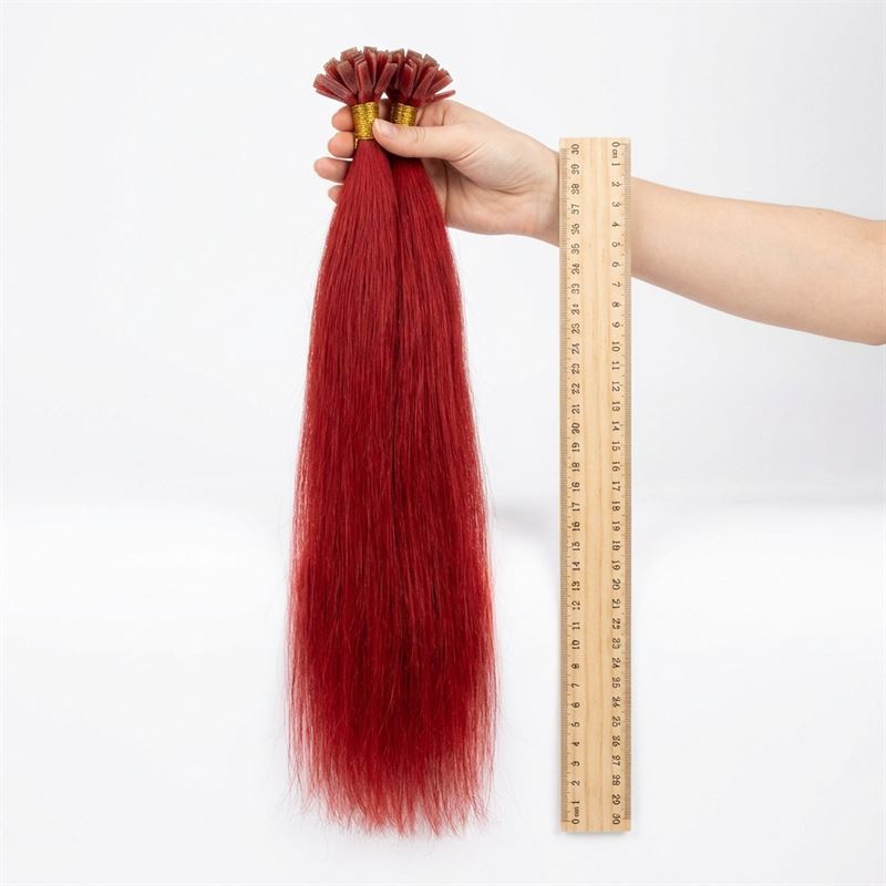 Hot Fusion Hair Extensions 60 cm, U-tip, postkasserød