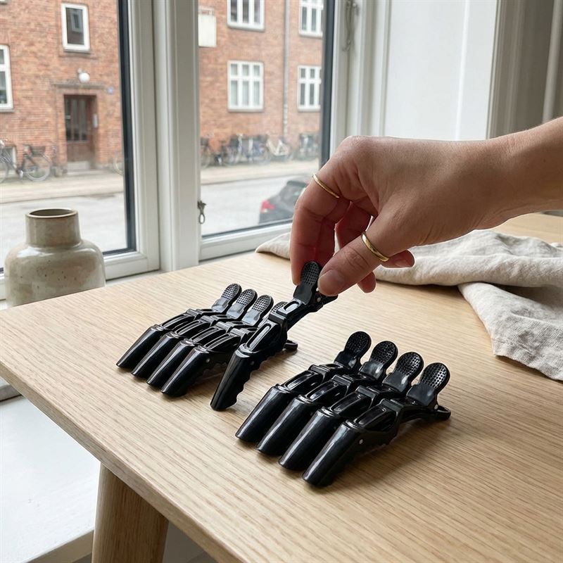 Laget av robust plast, tåler disse hårklypene daglig bruk og er enkle å rengjøre. Deres ergonomiske design gjør dem lette å håndtere og plassere, noe som effektiviserer stylingprosessen. Med avrundede kanter beskytter de hodebunnen og unngår ubehag, samtidig som de holder selv de tykkeste lokkene trygt på plass under klipping, farging eller oppsetting av hår.