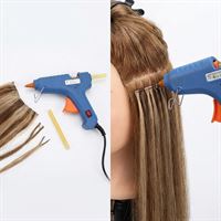 Denne lim pistolen er designet for å feste hair extensions, og gir en presis påføring av lim for en jevn og sikker montering.