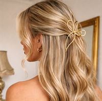 Gi frisyren din et elegant og feminint preg med SOHO Bow Hårklemme i gull. Den vakre hårklemmen er utformet som en dekorativ sløyfe og har en blank gullfinish som gir looken din et eksklusivt og stilrent uttrykk.
