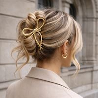 Det åpne sløyfedesignet gir et lett og elegant uttrykk i håret og gjør hårklemmen til mer enn bare et praktisk tilbehør – den fungerer også som en fin detalj som fullfører outfiten din. Den passer både til hverdagsbruk og til de dagene du ønsker at looken skal føles litt mer gjennomført.