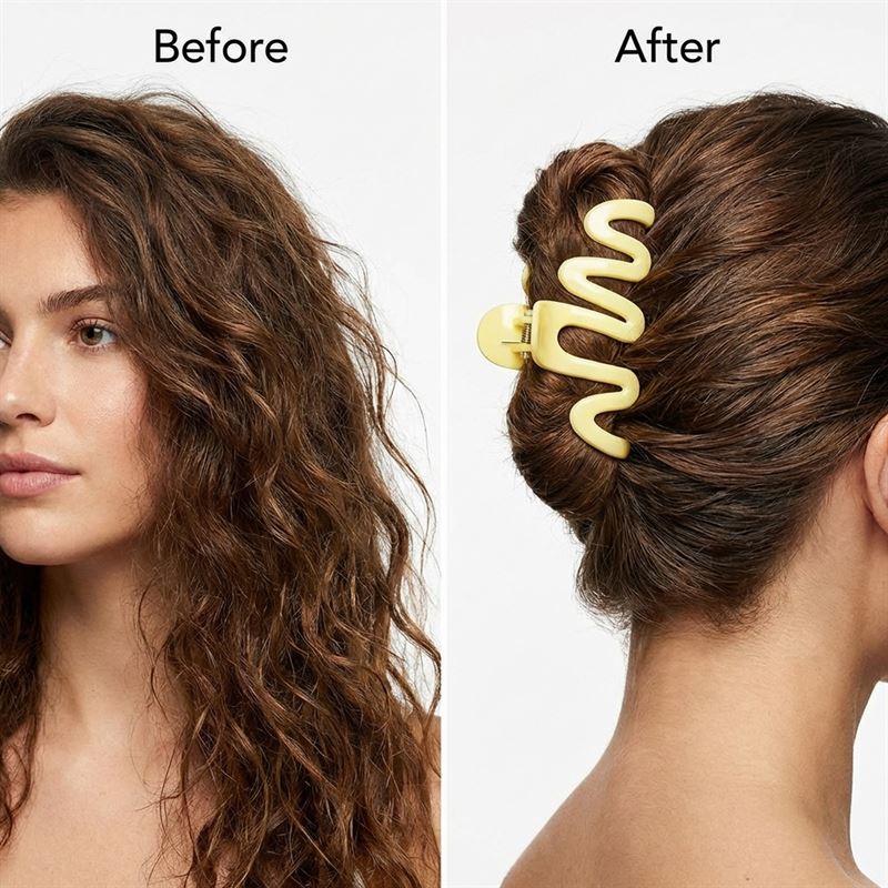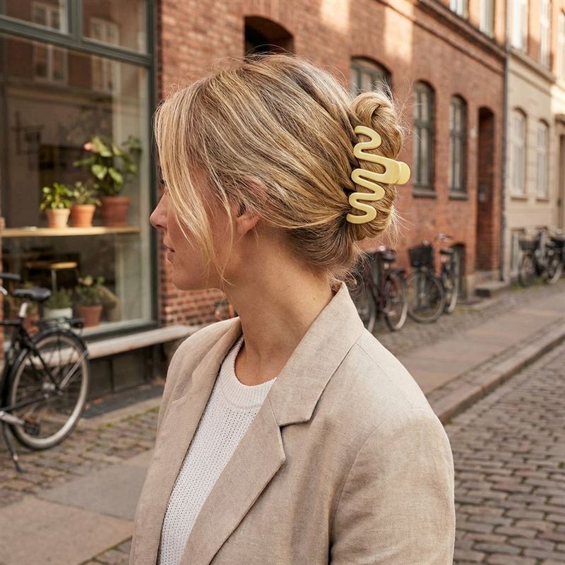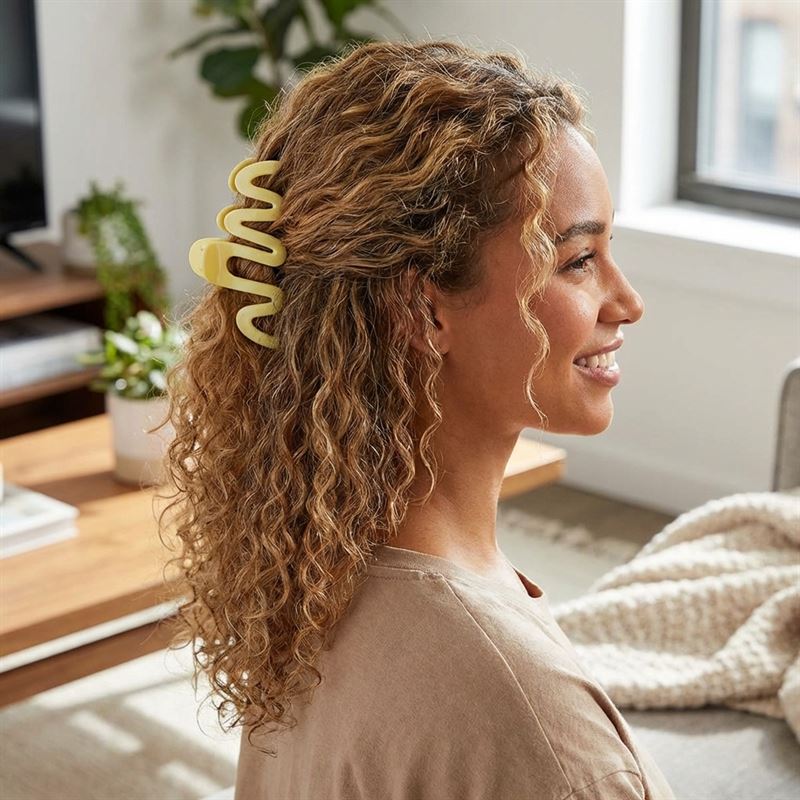 Denne SOHO Malik hårklypen i gul har et bølget design og er laget av lett PVC-materiale, som sikrer et sterkt grep som holder håret sikkert på plass uten å gli.