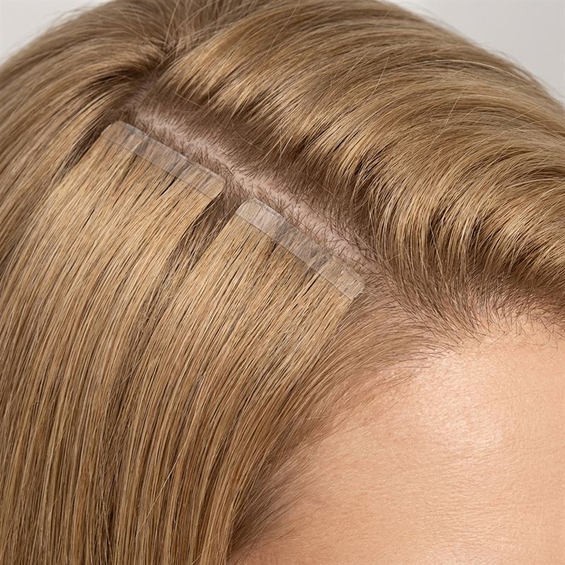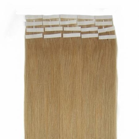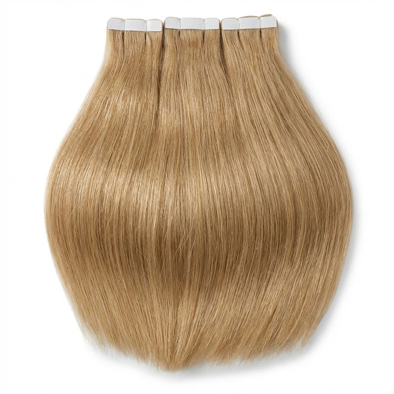 Tape Extensions 50 cm i mellomblond 27# er laget av 100 % ekte Remy-hår, og gir deg et fyldig og naturlig resultat. Disse extensionsene er designet for å smelte sømløst inn med ditt eget hår, og gir en usynlig overgang for en forlenget og voluminøs look.