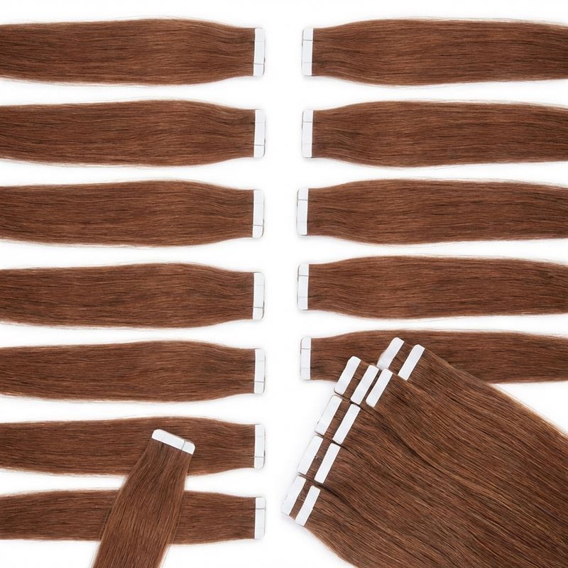 Tape-on hårforlengelse 50 cm 30 rødbrun