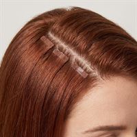 Hver pakke inneholder 20 baner, hver 3 cm bred, festet til en gjennomsiktig silikonetrense som etterligner hodebunnen din for en usynlig overgang. Den skånsomme tapen sikrer enkel og sikker påføring. Siden håret er 100 % ekte, kan du glattte, krølle og permanentbehandle det akkurat som ditt eget, og det kan gjenbrukes ved å montere ny tape.