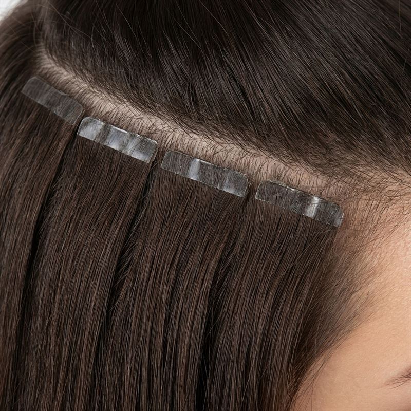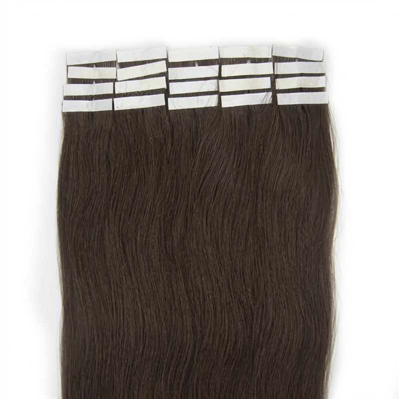 Disse Tape Extensions på 60 cm er laget av 100 % ekte Remy-hår i fargen mørkebrun #2, og gir deg en naturlig og fyldig hårforlengelse.