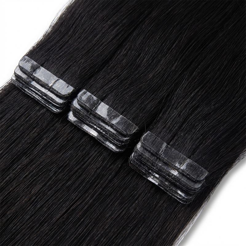 Tape Extensions Remy-hår 50 cm, naturlig svart 1B#, 20 baner