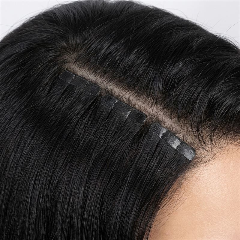 Kvaliteten på Remy-håret sikrer at alle hårstrå og skjellag vender i samme retning, noe som minimerer floker og gir et naturlig fall. Hver pakke inneholder 20 baner, hver 3 cm bred, som festes med et skånsomt tape på en gjennomsiktig silikonetrense. Dette gir en usynlig overgang som legger seg tett inntil hodebunnen, og gjør dem spesielt egnet for tynt og kort hår. Håret kan styles med varmeverktøy og gjenbrukes ved å montere nytt tape.