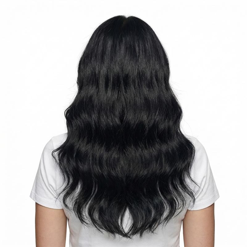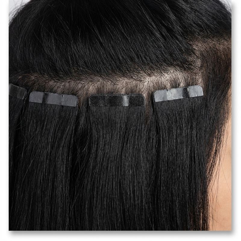 Disse Tape Extensions i 60 cm lengde og fargen Black #1 er laget av 100% ekte Remy-hår, designet for å gi deg fyldig og langt hår med en sømløs og naturlig overgang.
