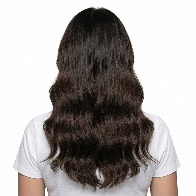 Disse Tape Extensions med Remy-hår i 60 cm lengde og fargen svart #1B gir deg fyldig og naturlig hår på en enkel måte.