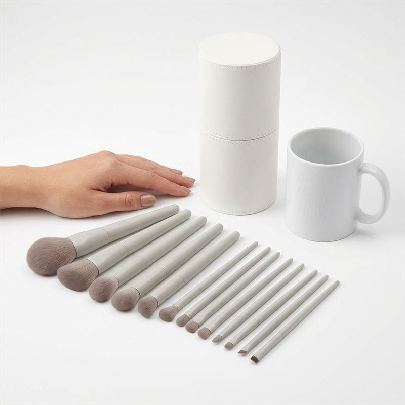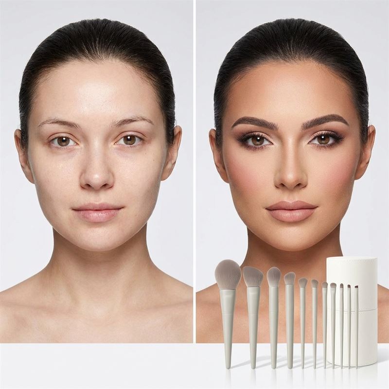 • 12 essensielle børster: Fra foundation og kontur til øyenskygge og bryn – alt er dekket.
