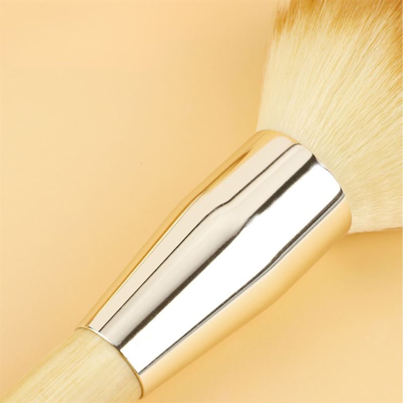 De myke, tette syntetiske fibrene sikrer en jevn og presis påføring av både pudder-, krem- og flytende produkter. Bambusskaftet gir et behagelig grep og en lett, men stabil følelse, mens de forsterkede aluminiumshylsene øker holdbarheten og gir et eksklusivt preg.