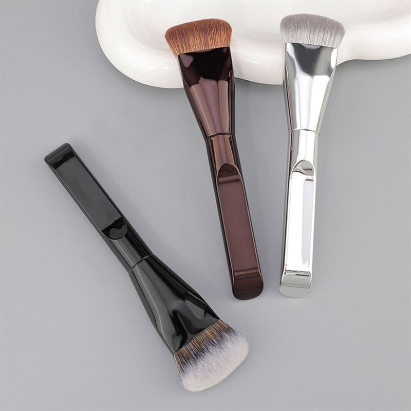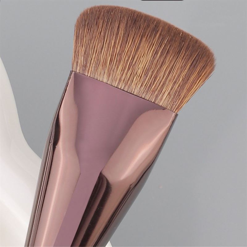 De silkemyke syntetiske hårene gjør det enkelt å jobbe produktet inn i huden med presisjon og kontroll, slik at du oppnår et profesjonelt resultat – enten du ønsker lett eller full dekning. Den skrå formen gjør børsten spesielt effektiv rundt nese, kjevelinje og kinnben, der presisjon er avgjørende.