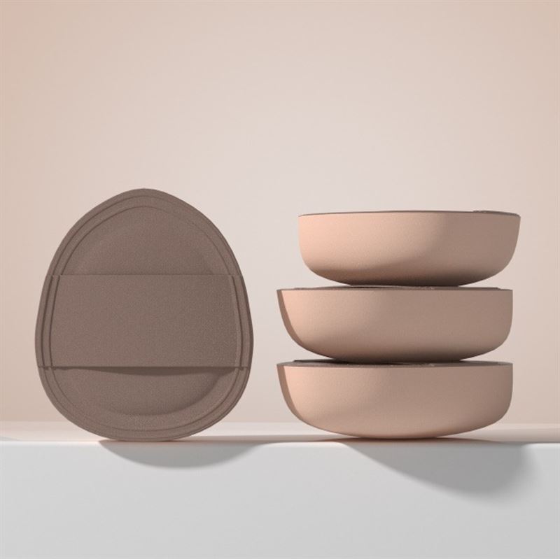 • Sett med 3 makeup-puffer i vakre nyanser (rosa, beige og brun)