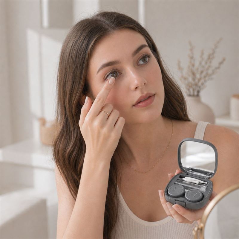 Dette etuiet til kontaktlinser samler flere funksjoner i ett kompakt design og fungerer perfekt både som linseetui og reisesett til øyepleie. Den smarte 5-i-1-løsningen inneholder innebygd speil, etui til kontaktlinser med markering for venstre og høyre, beholder til linsevæske, pinsett til kontaktlinser samt kontaktlinseapplikator, slik at du enkelt og mer hygienisk kan sette inn og håndtere linsene dine på farten.