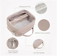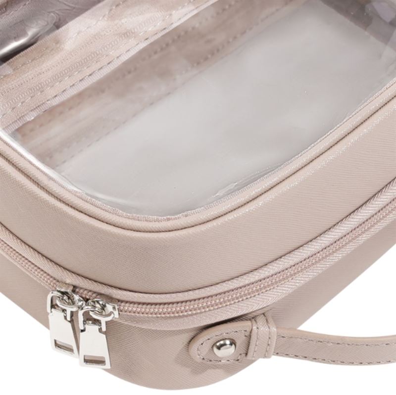 UNIQ Cosmo er ideell til ferie, helgeturer, håndbagasje og daglig bruk. De transparente panelene gjør det enkelt å se innholdet, mens den strukturerte formen hjelper vesken med å holde fasongen. Det praktiske håndtaket gjør den lett å ta med, og glidelåslukkingen holder produktene dine samlet og beskyttet når du er på farten.