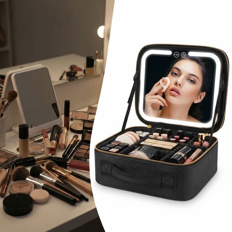 Drømmer du om feilfri makeup, uansett hvor du er? Med denne smarte makeup-vesken fra Fashiongirl, blir drømmen virkelighet! ✨ Den er ikke bare en oppbevaringsløsning, men din personlige sminkestudio på farten. Vesken kombinerer eleganse og funksjonalitet, og sørger for at du alltid er forberedt, enten det er til hverdags eller fest.