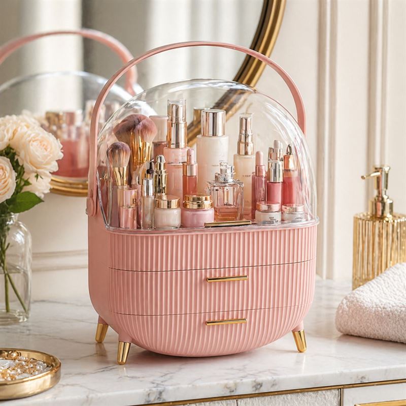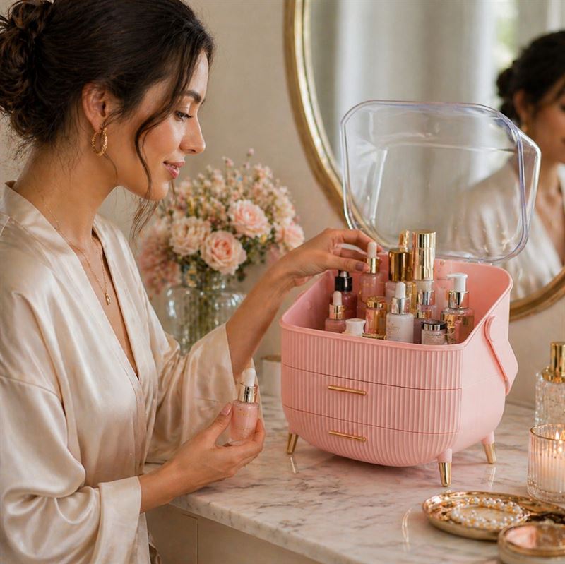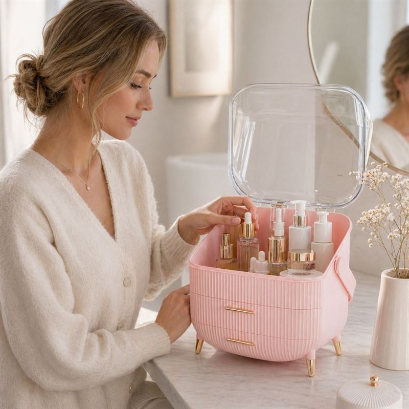 Gi plass til eleganse og funksjonalitet med denne UNIQ Retro Makeup Box Organizer i rosa. Bestill nå og opplev en verden av organisert luksus!