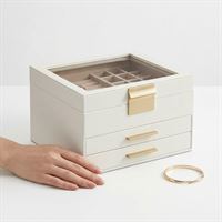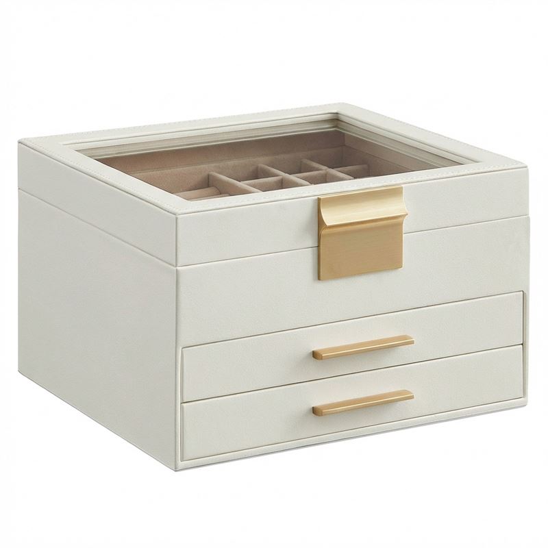 UNIQ smykkeskrin i 3 lag med glasslokk - hvit/gull