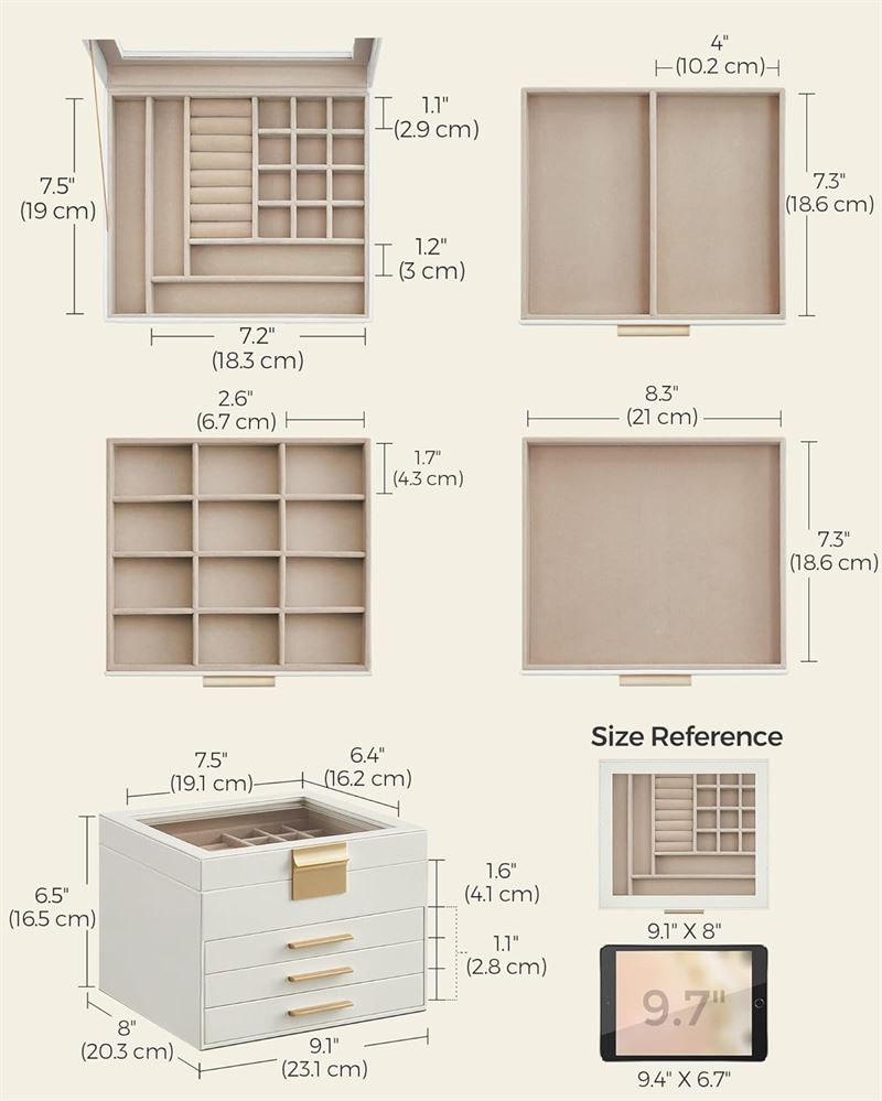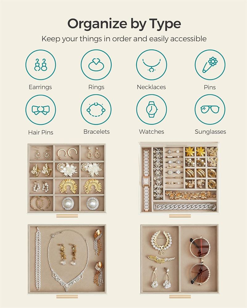• 3 lag for bedre orden God plass til både små og større smykker, så ingenting blir borte.