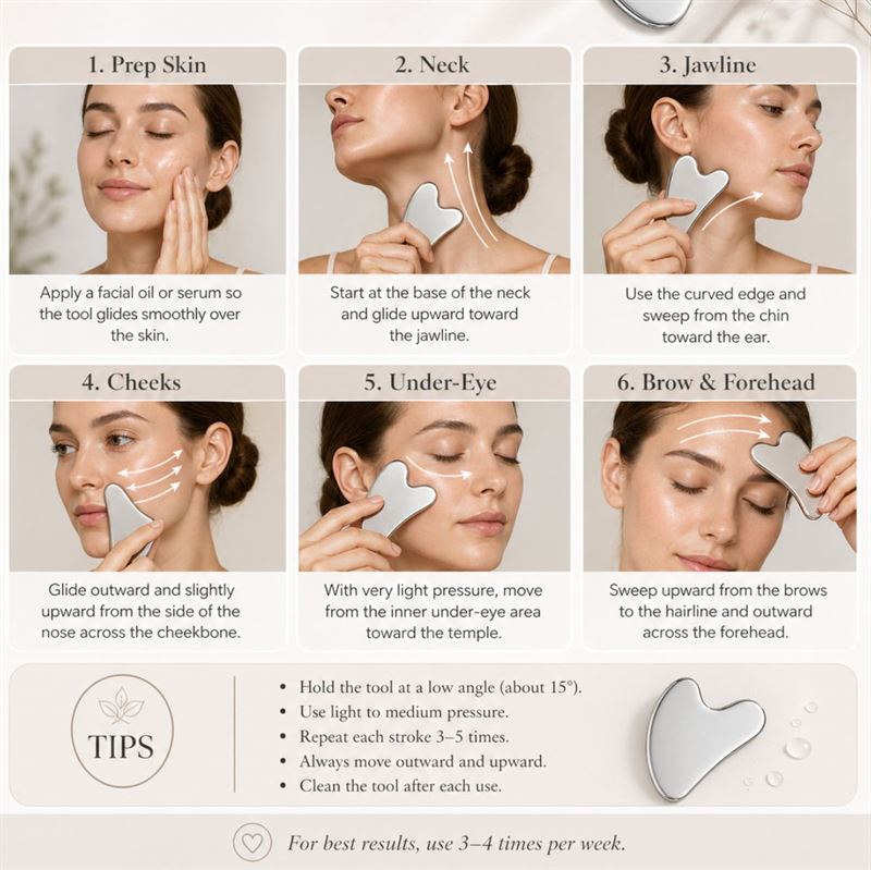 Stainless Steel Gua Sha passer perfekt inn i både morgenrutinen og kveldsrutinen din og er et opplagt valg for deg som elsker beauty tools, hudpleie og små luksuriøse ritualer i hverdagen. Bruk den hjemme eller ta den med i kofferten når du vil ha en praktisk og stilfull løsning for self care på reisen.